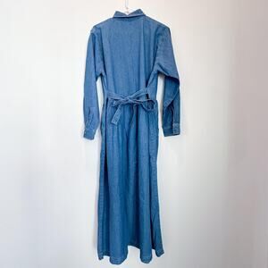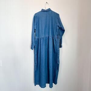 Blue Diamond Dress Womens Large Blue Denim Button Front Belted Pockets Maxi