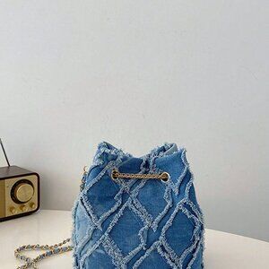 Blue Diamond Lattice Women's One-Shoulder Bucket Bag With Metal Drawstring