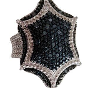 Blue Diamond Ring Set in 925 Silver signed SJD