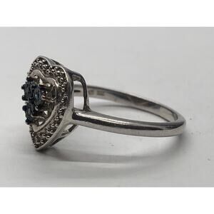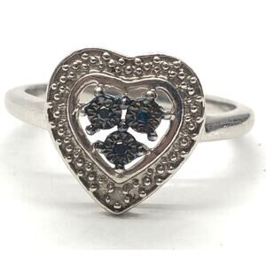 Blue Diamond Sterling Silver Ring 925 Size 7.5 Heart Signed TGGC