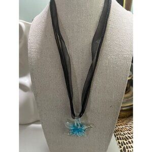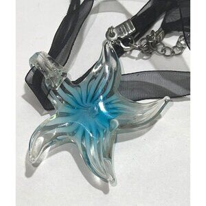 Blue Dichroic Star Fish Glass Pendant -- 18"