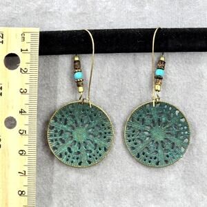 Blue Disc Floral Dangle Bead Hoop Hook Earring Fashion Boho Retro Jewelry JB2-39