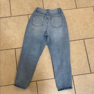 Stylish blue distressed jeans perfect for a casual look. Comfortable fit with a trendy design.