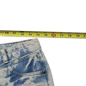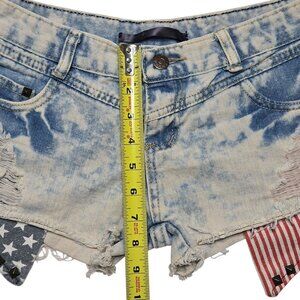 Blue Dog Shorts Womens Large Bleached Denim Distressed Stars Stripes Flag Studs USA