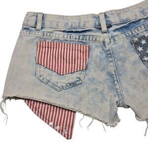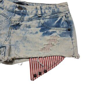 Blue Dog Shorts Womens Large Bleached Denim Distressed Stars Stripes Flag USA