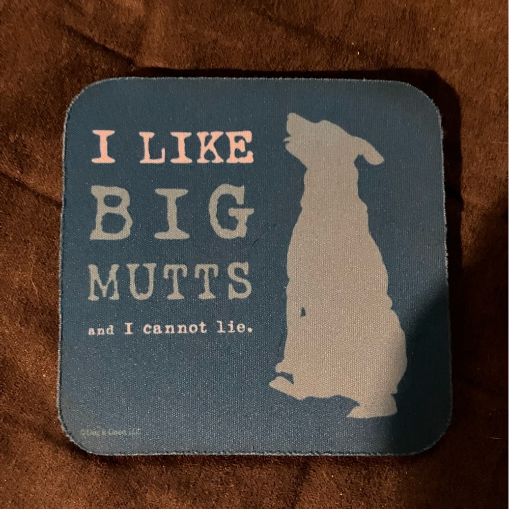 Enjoy your drinks with this stylish blue dog-themed coaster. Perfect for dog lovers. “I like big mutts and I cannot lie!” Material of a mouse pad