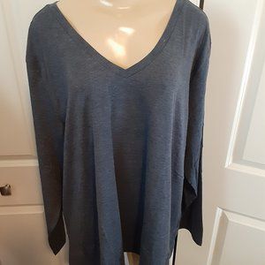 Blue Dolnine Plus Size V Neck Women's Top Long Sleeve