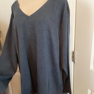 Dolnine Plus Size Blue V Neck Women's Top Long Sleeve