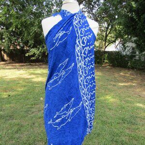 Blue Dolphin Print Beach Sarong Large Scarf Wrap Blue