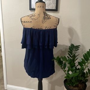 Top can be worn on shoulders are off the shoulders. Length 23 inches, armpit to armpit 19 inches, Waste line 24 inches, Fabric 95% rayon 5% spandex.