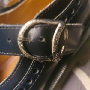 Vintage Blue Leather Dr. Martens Chunky Mary Janes. Made in England. Gorgeous blue color is like a dark denim blue. These are such a BEAUTIFUL pair of Doc’s and in super vintage condition❣️ Single buckle. Brogue style perforated detailing. Chunky heels. ITS IN A NEW-LIKE CONDITION‼️ They have very little wear inside or out and look hardly worn (STORE DISPLAY...MIGHT HAVE BEEN TRIED ON)