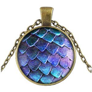 Blue Dragon Scale Cabochon Necklace 18" chain 1 1/4" pendant N1