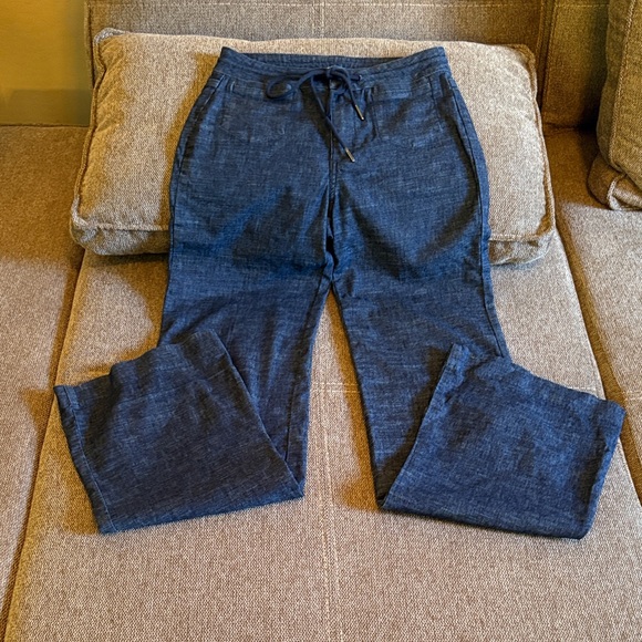 Comfortable blue drawstring pants. Perfect for casual wear.