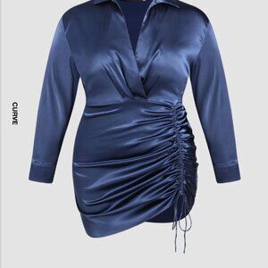 Blue Drawstring Satin Mini Dress (Plus Size)