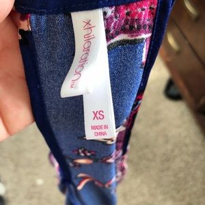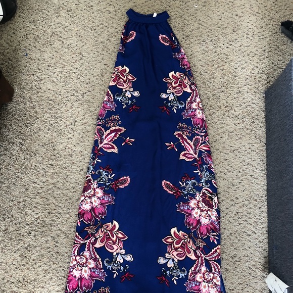 Stunning blue, purple, and pinks high neck line A framed dress. Size XS by Xhilaration