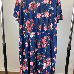 Blue Dress with pink floral design