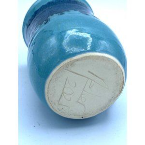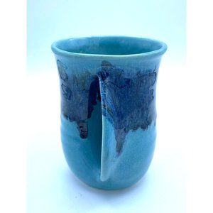 Beautiful Blue Drip Glaze Pottery Hand Warmer Mug. Perfect condition never used. Artist Signed by Neher. Stands 5 inches tall. Holds 16 ounces. Unique Coffee Mug.