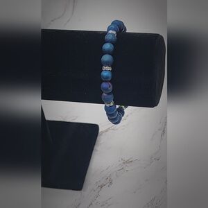 Blue Druzy Agate Gemstone Stretch Bracelet