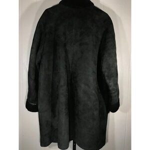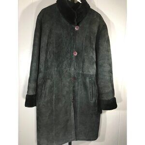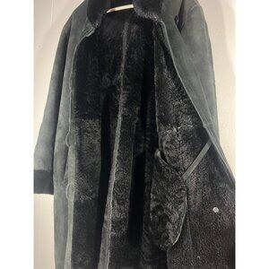 Blue Duck Womens Shearling Leather Suede Button Long Coat Black Size XL