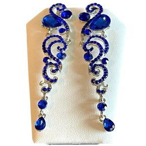 Stunning ROYAL BLUE Silver Rhinestone Crystal Dangle Teardrop Earrings!