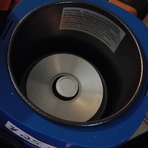 Bright blue electric countertop fryer basket mini multi-cooker. Compact and portable. Easy-to-use digital control on the mini cooker. Bold blue finish.