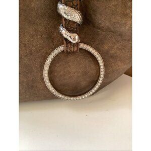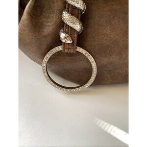 The bedazzled ring on purse has a few stones missing as shown in photos. Bag is in excellent condition. Includes original dust bag.