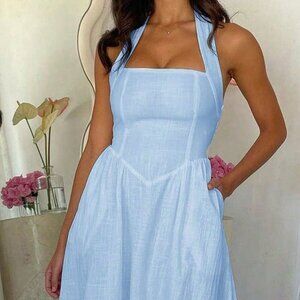 Blue Elegant Women's Hanging halter Neck Long Dress