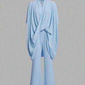 Blue Elegant Women's Loose Comfortable Texture Style Women Top And Pants Set