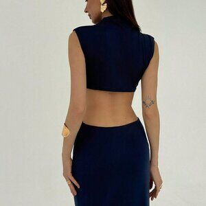 Blue Elegant Women's Metal Decor Hollow-Out Super Long Dress