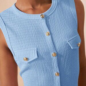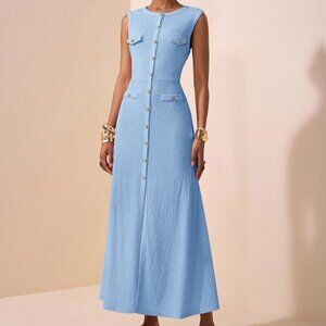 Blue Elegant Women's Round Neck Sleeveless button down Maxi Dress