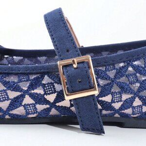 Blue Elegant Women's Woven Square Toe Slip-On Flats