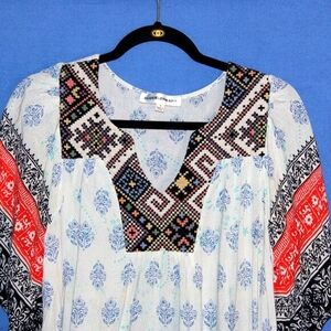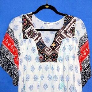 #BohoChic #Folkloric #EmbroideredDress #TunicDress #FestivalStyle #SummerVibes #EclecticFashion #BohemianFashion #PrintedDress #GlobalInspired #FlowyDress #WhiteDress #VibrantPrint