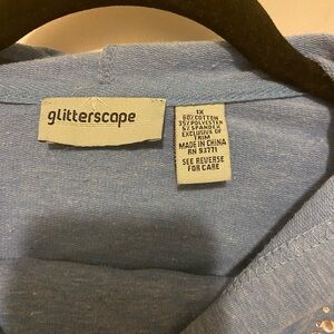 This blue hoodie from Catherines features a relaxed fit with ornate embellishments on the front, creating a stylish and comfortable top. The design includes a full-length zipper and a standard hood, making it perfect for casual wear.