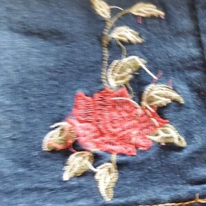 This knee-length pencil skirt in a classic blue hue is ideal for work settings. It features elegant pink floral embellishments that enhance its sleek silhouette. The skirt's design is both sophisticated and versatile, making it a valuable addition to any wardrobe.