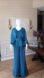 #Women's Formal 3pc Pants #Beaded #Sequined #Cocktail #Party #Wedding, #Special Event #Wide Legs Pants Suit #Relaxed Silhouette #Bolero Jacket #Embellished #Fitted Bodice #Elegant #Women's Formal Pants, Chiffon, Blue, #V-neck, 3/4 Sleeves, Flattering Silhouette, #3 Piece Pant Set #Size 10 #Formal #Wedding #Ceremony #Glam #Cocktail #VBack #Full Length #Pant Suit Set #Chiffon #Flowy #Wide Leg