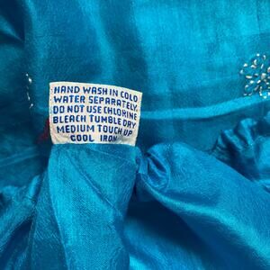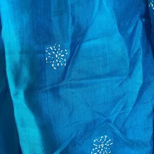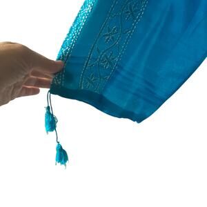 Blue Embroidered Long Sleeve Sz S  Silk Ethnic Top Boho Festival Blouse