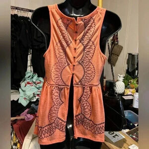 Super Cute Blue Embroidered Orange Altar’d State Sleeveless Top