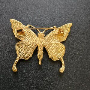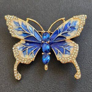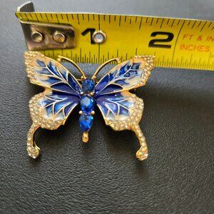 Blue Enamel Butterfly Brooch Rhinestone Gold Tone Pin Sparkly Costume Jewelry