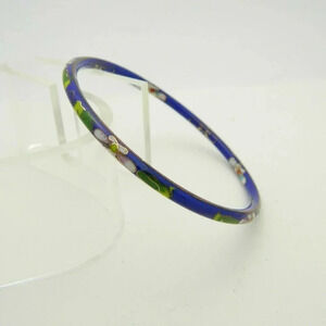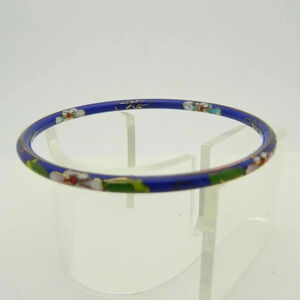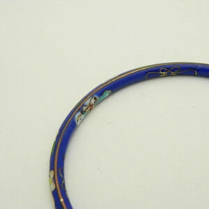 Blue Enamel Cloisonne Gold Tone Oriental Flower Floral Bangle Bracelet