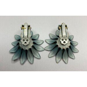 Blue Enamel Flower & Rhinestone Center Clip Earrings Vintage
