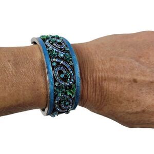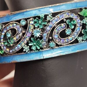 Clamper Filagree Enamel Rhinestone Bling Glam