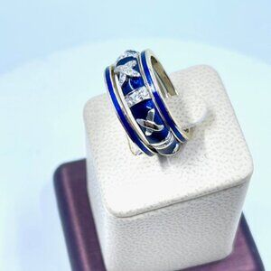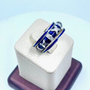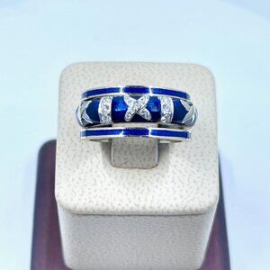 Blue Enamel Stackable Ring in 18k white gold.