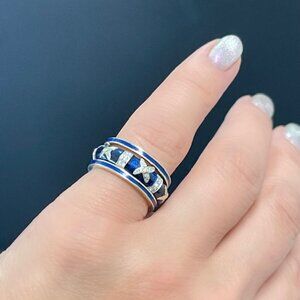 Blue Enamel Stackable Ring in 18k white gold