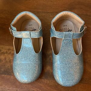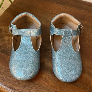 Blue Enchanted Glitter Monkey Feet Girl Shoes 4-5 Y