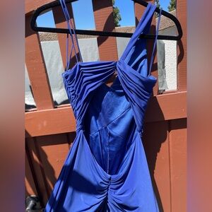 This stunning blue evening gown features a sophisticated design with intricate detailing. Perfect for special occasions, it offers a flattering fit and elegant style. Off the shoulder, only worn a couple of times. Purchased at Bloomingdale’s.