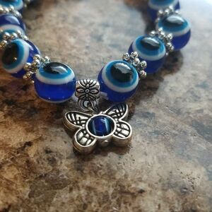 ❤ Blue Evil Eye Beaded Bracelet with Butterfly Charm