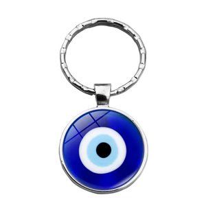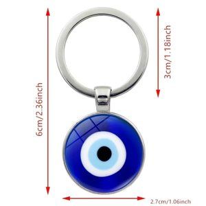 This keychain with blue evil eye will protect you on the go.. The evil eye is 1” diameter