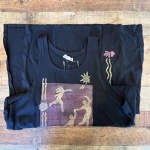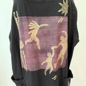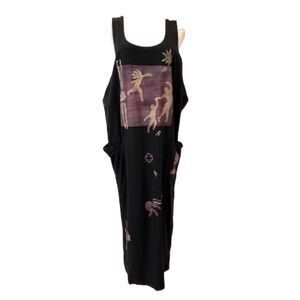 Blue Eyed Bear Vintage 90's Black Maxi Dress One Size Block Print Art to Wear
