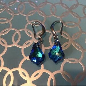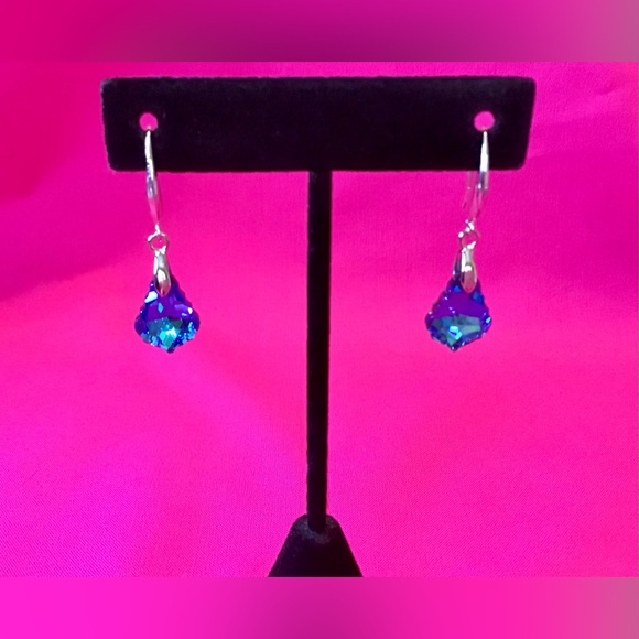These Blue Faceted Faux Gemstone Drop Earrings are a beautiful and elegant accessory perfect for various occasions such as Mother's Day, weddings, anniversaries, birthdays, and Valentine's Day. Made with blue faux gemstones in a leaf shape, these 40mm drop earrings feature a hook closure for easy wear on the lobe. The blue color adds a touch of beauty to any outfit, making them a great gift for loved ones or a stylish addition to your own jewelry collection. NWOT