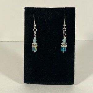 Blue Faceted Glass Cube Dangle Earrings NWT